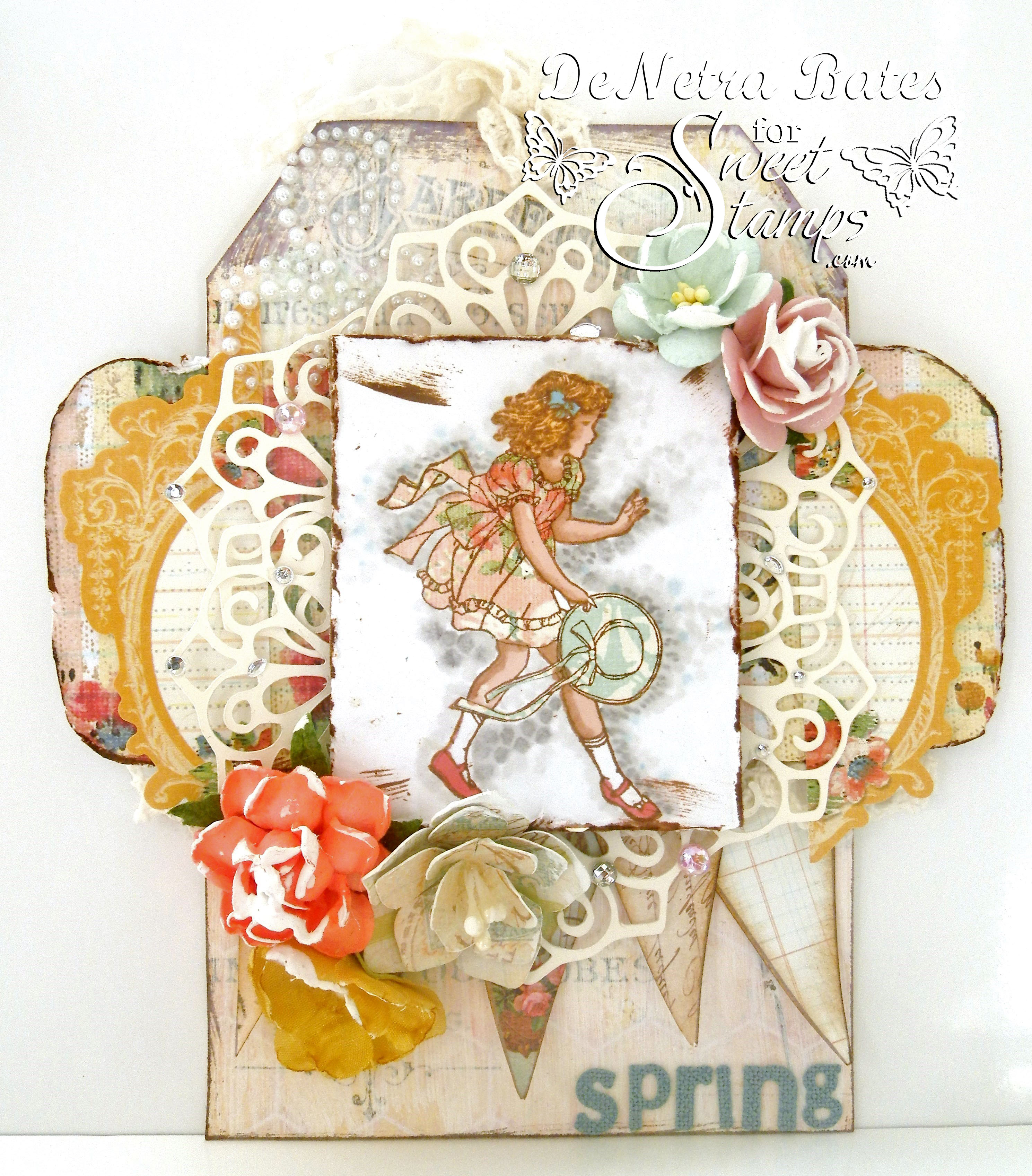 5. This is so pretty. I love the lacey paper behind the image and the roses. They add a really elegant touch to this lovely tag. Cute image too.